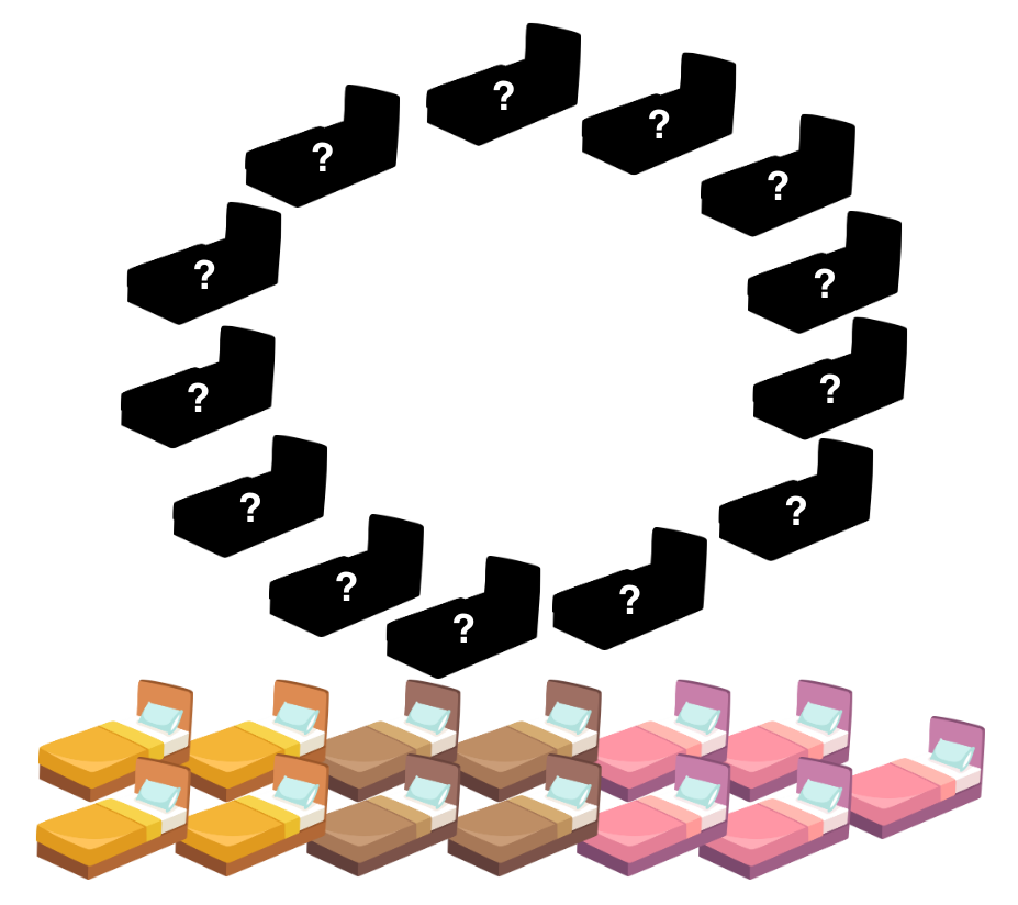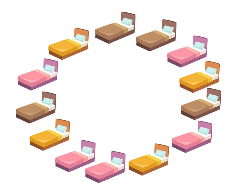 Yoh vill ställa ut alla sängarna i en ring, så att inga två intilliggande